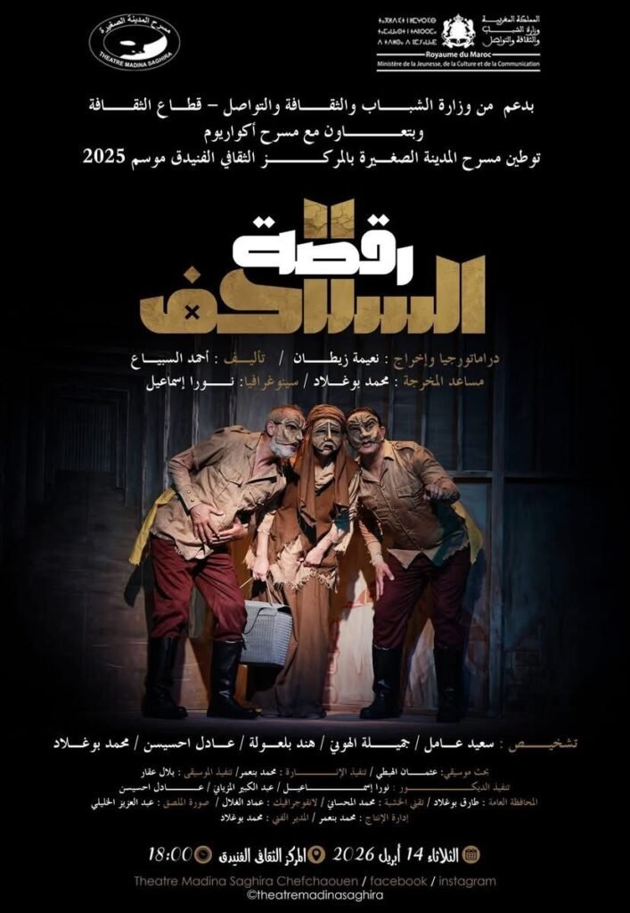 يقدم مسرح المدينة الصغيرة بشفشاون عرضه المسرحي:رقصة السلاحف درماتورجيا وإخراج:نعيمة زيطان،وتأليف أحمد السبياع خلال فعاليات توطين مسرح المدينة الصغيرة بالمركز الثقافي الفنيدق موسم 2025 المدعوم من طرف وزارة الشباب والثقافة والتواصل.وذلك يومي:الثلاثاء 14 أبريل 2026، بالمركز الثقافي الفنيدق،والأربعاء 15 أبريل 2026 بالمركز الثقافي بتطوان.وكان لنا لقاء مع مؤلفه الكاتب أحمد السبياع تطرقنا خلاله للكثير من القضايا الشائكة في مجال الكتابة المسرحية وحيثياتها.