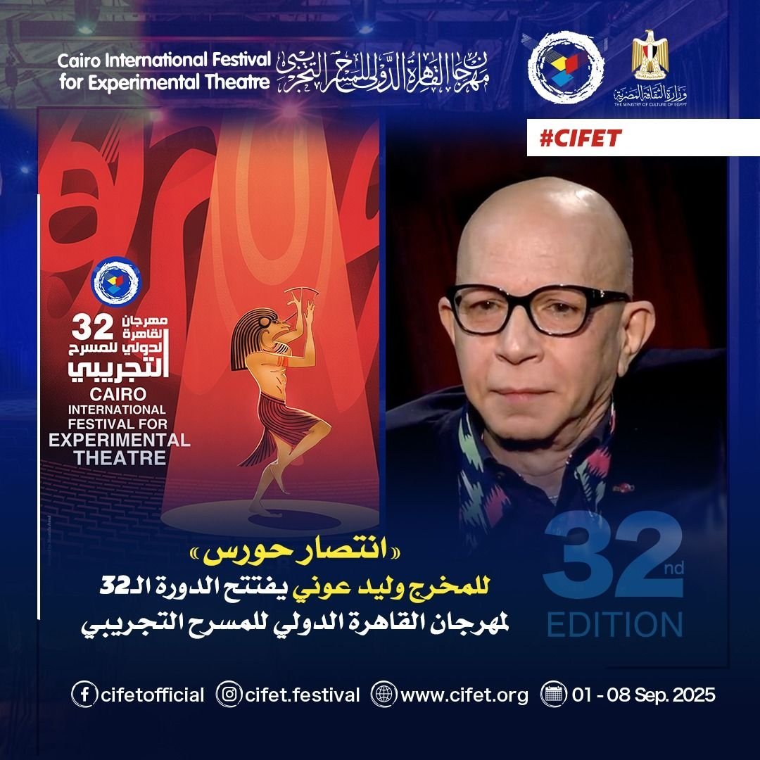 أعلنت إدارة مهرجان القاهرة الدولي للمسرح التجريبي، برئاسة الدكتور سامح مهران، عن تفاصيل العرض الافتتاحي للدورة الثانية والثلاثين، والمقرر إقامته في الأول من سبتمبر المقبل على المسرح الكبير بدار الأوبرا المصرية، تحت عنوان «انتصار حورس».