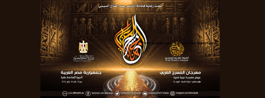 بمناسبة اقتراب موعد انطلاقة الحدث المسرحي العربي الأبرز والذي يدشن بالمسرح بداية كل عام، تعلن الهيئة العربية للمسرح بيانها حول فعاليات الدورة 16 من مهرجان المسرح العربي، الذي تنظمه بالتعاون مع وزارة الثقافة المصرية، من 10 إلى 16 يناير 2026 في مدينة القاهرة، حيث تحظى هذه الدورة برعاية من فخامة رئيس الجمهورية عبد الفتاح السيسي، وبمشاركة فاعلة من كافة أقسام وزارة الثقافة المصرية وكوادرها البشرية الإدارية والفنية.