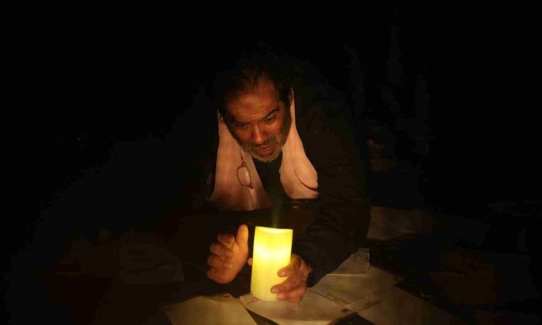 يتحاور مع شمعته التي بقيت معه كآخر جذوة أمل له.