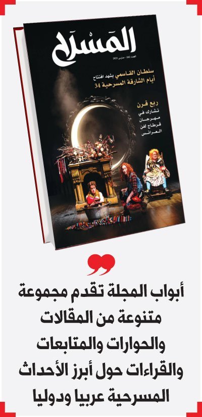 المجلة عكست في “مدخل” جانبا من أجواء الدورة الرابعة والثلاثين من أيام الشارقة المسرحية التي انتظمت من الـ19 إلى الـ26 من فبراير المنقضي.
