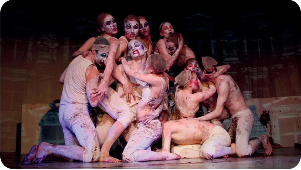 باختصار، يمكن القول إنه من خلال تحويل العلاقة المعتادة بين الاستعارة والمجاز في الأداء المسرحي، نجح “كريستوف شلينجينسيف” في ترسيخ النقاش خارج سياق المسرح التقليدي وطريقة استقباله، التي تتميز بفك رموز العلامات المسرحية، وفي احتلال المجال العام – لمدة أسبوع على الأقل.