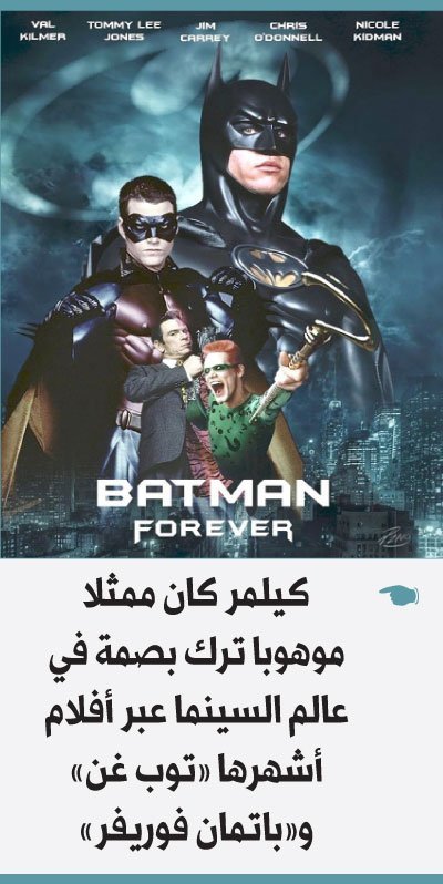 ودعت هوليوود الممثل فال كيلمر الذي يعد واحدا من أشهر ممثليها، حيث كان ممثلا موهوبا قدم طوال مسيرته أداء متنوعا ترك بصمة في عالم السينما، عبر أفلام أشهرها “توب غن” و”باتمان فوريفر” و”ذي دورز”، رغم التحديات الكبيرة التي واجهها.
